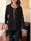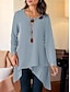 Femme Grande Taille T shirt Bloc de couleur basique manche longue Col V Hauts longs Casual Fin de semaine Boutons Tunique fluide Bleu Orange Vert Gris Automne hiver