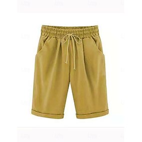 Femmes Bermuda Shorts Slacks Occasionnel Longueur Genou Naturel Uni Avec Poches Taille Élastique Confortable Extérieur Tenue quotidienne Sortir Bleu de paon Abricot Brun claire Bleu ciel clair Été