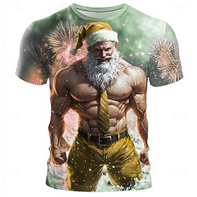 Homme T-shirt Père Noël Col ras du cou Vêtement Tenue Impression 3D Extérieur Cadeaux de Noël Soirée Manche Courte Frais Quotidien