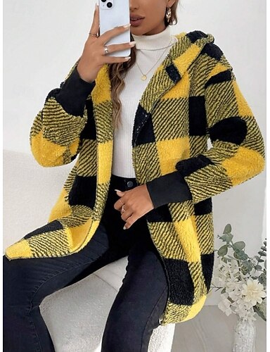 Femmes Veste en Polaire Veste Sherpa Confortable Respirant Imprimé Front ouvert Occasionnel Plaid Vacances Rue Occasionnel Tenue quotidienne Ouvert devant Long Col Rabattu Coupe régulière manche