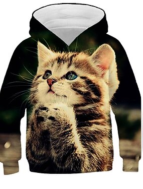Sweat à capuche Enfants Fille Chat Casual manche longue Actif Coton 7-13 ans Automne Multicouleur Noir
