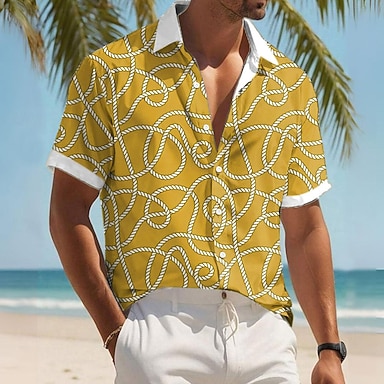 Homme Géométrique Ligne Art abstrait Chemise Chemise d'été Chemise Boutonnée Manche Courte Mode Décontractée Extérieur Vacances Tenue Quotidienne Été Col Rabattu Impression 3D Chemise en lin Jaune