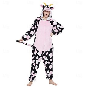 Pyjama Kigurumi Costume de Groupe Costume grenouillère Animal Cow Vache Laitière Chaud Mignon Confortable À capuche Toison Enfant Adulte Homme Femmes Unisexe Halloween Carnaval Soirée Performance