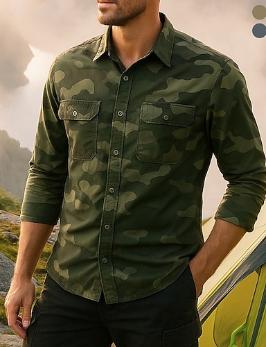 Homme chemise cargo Chemise camouflage manche longue Col Rabattu Top Extérieur Respirant Printemps Automne Coton Camouflage Vert Kaki Grise Tennis Le golf Course
