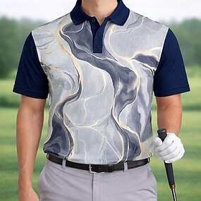 Homme Marbre Polos de Sport Manche Courte Polos Chemises à Col Occasionnel Athleisure Tenue quotidienne Impression 3D Boutons Printemps & Été Bleu bleu marine Violet