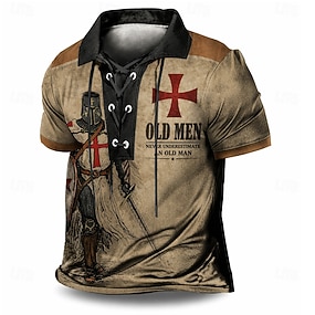 Homme Chevaliers Templiers Polo Manche Courte Polos Revers ancien Occasionnel Vêtements de rue Tenue quotidienne Impression 3D Maille Respirante Printemps & Été Marron foncé Noir Marron