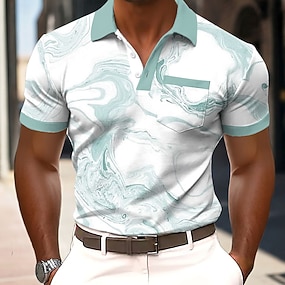 Homme Marbre Polo Manche Courte Polos Chemises à Col Vêtement décontracté de travaile Extérieur Athleisure Tenue quotidienne Impression 3D Boutons Maille Respirante Printemps & Été Bleu Marron Vert