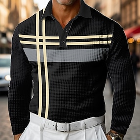 Homme Géométrique Rayures horizontales Chemises Polo Gaufre manche longue Polos Chemises à Col Vêtement décontracté de travaile Affaires Tenue de travail Tenue quotidienne Boutons Printemps Automne