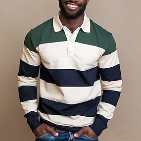 Homme Rayures horizontales Polo de rugby manche longue Polos Chemises à Col Vêtements de sport Occasionnel Extérieur École Athleisure Impression 3D Boutons Printemps Automne Bleu Marron Vert