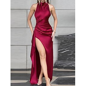 Femmes Robe Midi Robe en Satin Robe de Soirée Mode Chaud Moderne Extérieur Vacances Soirée Mince Uni Sans manches Col Halter Noir Rose Claire Rouge Bordeaux Marron Été Printemps