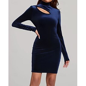 Femmes Robe Midi Robe de Noël Robe en Velours Robe de Cocktail Élégant Mode Moderne Quotidien Extérieur Soirée Mince Uni manche longue Col haut Bleu de minuit Printemps Automne