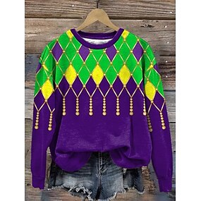 Sweatshirt Femme Carnaval Pull Graphique Décontracté Manches Longues Col Ronde Tops Réguliers Décontracté Rue Quotidien Blanc Jaune Violet Automne Hiver