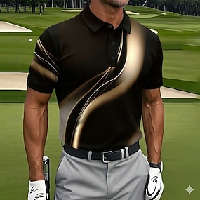 Homme Polo Chemise de golf Club Col cubain Revers Manche Courte Occasionnel Vagues Nouveauté Boutons Devant Printemps & Été Coupe régulière Argent Noir Dorée Polo