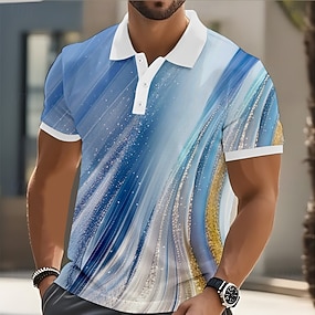 Homme Abstrait Golf Polos de Sport Manche Courte Polos Chemises à Col Occasionnel Athleisure Boutons Printemps & Été Bleu Dorée Vert