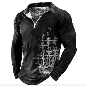 Homme Nautique Polos à zip Chemise de golf manche longue Polos Chemises à Col ancien Occasionnel Vêtements de vacances Vêtements de bateau Tenues de fête Impression 3D Polo à fermeture éclair 1/4