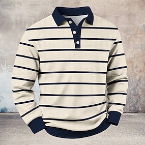Homme Rayures horizontales Chemises Polo Gaufre Polo de rugby Texturé manche longue Polos Revers Vêtements de sport Occasionnel École Athleisure Tenue quotidienne Impression 3D Printemps Automne Hiver