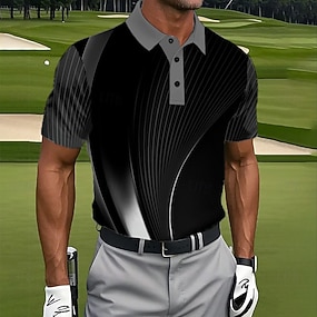 Homme Géométrique Ligne Polo Manche Courte Col Rabattu Décontracté Quotidien Sport & Loisir Athleisure Boutons Été Noir