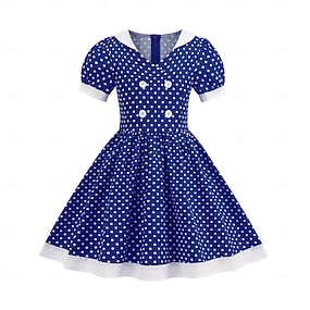 Années 1950 Rockabilly Robe vintage Robe Robe trapèze Manches courtes À pois Ligne A Déguisement Fille Carnaval Mascarade Tenue quotidienne Enterrement de Vie de Jeune Fille Enfant Robe Printemps