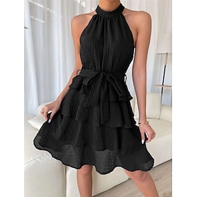 Femmes Mini Robe Robe noire Robe de remise des diplômes Robe Décontractée Robe de Cocktail Streetwear Basique Occasionnel Vacances Rue Fête Coupe régulière Sans manches Col Halter Bleu Noir Rouge