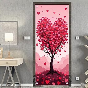 Saint Valentin Affiches Couverture de porte Bannières extérieures Amour Cœur Mignon Romantique Moderne Soirée Dortoir Arrière-plans de prise de vue Porte d'Entrée Décoration pour demande en mariage