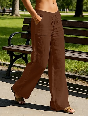 Femmes Pantalon en coton et lin Chinos Pantalon d'été Culottes bouffantes Vacances Streetwear Basique Longueur complète Taille moyenne Uni Cordon de serrage Avec Poches Confortable Confort Non