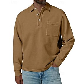 Homme Polo Chemise de golf Occasionnel Rue Revers manche longue Basique Moderne Uni Avec Poches Boutons Printemps Automne Coupe régulière Bleu Violet Noir bleu marine Fuchsia Marron Polo