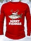 Noël Homme Poisson Noël T-shirt manche longue T-shirt Impression 3D Col ras du cou Chemise Mode Basique 3D Rue Occasionnel Quotidien Bleu Noir Rouge Été Printemps Vêtement Tenue S M L XL XXL XXXL