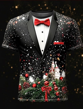 T-shirt de Noël pour homme, costume de Noël 3D, arbre, flocon de neige, mode, décontracté, imprimé 3D, fête, rue, noir/rouge, noir, blanc, manches courtes, col ras du cou, été, printemps, vêtements,
