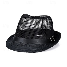 Homme Chapeau de Paille Chapeau de soleil Chapeau à bord sauvage Noir Blanche Lin Maille Mode Décontractées Plein Air du quotidien Plein Respirable