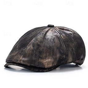 Homme Casquette Plate Noir Rouge Faux Cuir Vêtement de rue mode Mode des années 1920 Extérieur du quotidien Sortie Plein Chaud