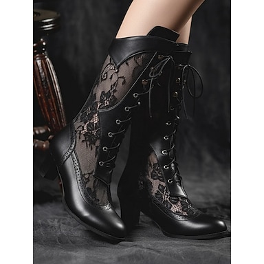 bottes mi-mollet à lacets victoriennes pour femmes avec un design en dentelle vintage et des accents en similicuir - style rétro pour le cosplay, les événements formels et le quotidien