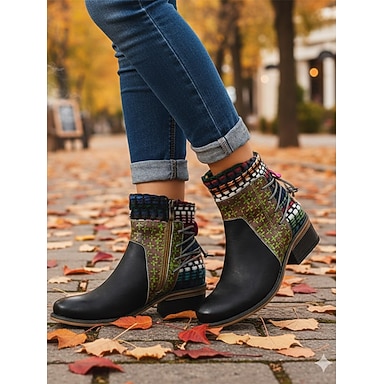bottines femme bohème chic avec patchwork coloré et fermeture éclair – bottines à lacets style vintage pour l'automne et l'hiver