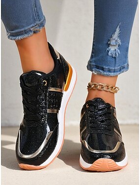 Baskets métallisées dorées pour femmes - confortables et légères pour un usage quotidien et la marche