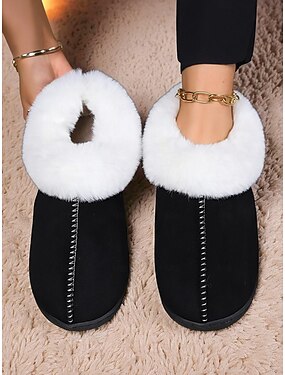 Chaussons chauds doublés en polaire pour femmes avec col en fausse fourrure, chaussures d'intérieur confortables et antidérapantes, pantoufles d'hiver élégantes pour dames &confort de vacances