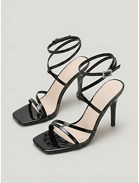 Sandales noires à talons hauts et brides pour femmes - élégantes chaussures à bout ouvert et bride cheville, parfaites pour une soirée cocktail