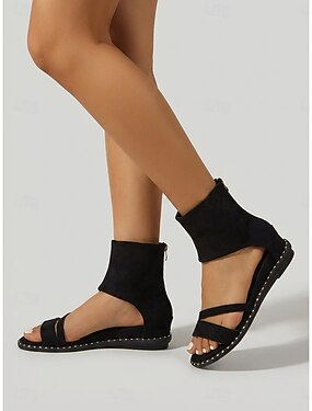 Sandales plates bohèmes en daim kaki pour femmes - sandales gladiateur élégantes à entre-doigts avec large bride à la cheville et boucle, idéales pour les festivals de musique et les vacances en plein
