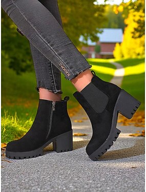 Bottines Chelsea en simili-daim pour femme – bottines à talon bloc et semelle crantée pour les sorties à la ferme en automne, les routes de campagne et la cueillette de citrouilles