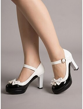 Escarpins Mary Jane vintage classiques des années 1950 pour femmes - élégants escarpins noirs et blancs à nœud et talon bloc, parfaits pour les goûters rétro ou le bureau. &événements formels