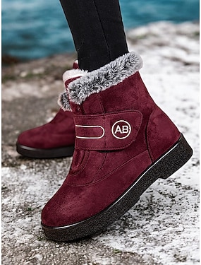 bottes de neige d'hiver bordeaux pour femmes avec doublure en fausse fourrure, sangle velcro et semelle antidérapante - chaussures chaudes et confortables pour temps froid
