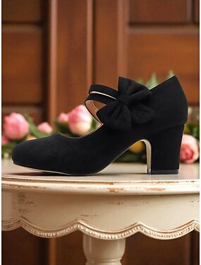 escarpins noirs à talons blocs découpés pour femmes – chaussures élégantes à bout pointu avec motif floral pour les fêtes ou les tenues de soirée