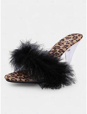 sandales à talons hauts transparentes pour femmes avec bride en fausse fourrure duveteuse – parfaites pour les fêtes, les sorties nocturnes et les occasions spéciales