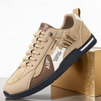 Baskets beiges décontractées pour homme, à lacets, légères et confortables, chaussures de marche tendance, idéales au quotidien, en voyage, pour les trajets domicile-travail, les loisirs en plein air, les activités du week-end et un style décontracté mode