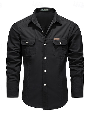 Homme chemise cargo Chemise de randonnée manche longue Col Rabattu Top Extérieur Respirant Printemps Automne Coton Noir Café Grise Chasse Entraînement Voyage