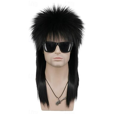 Perruque longue droite pour hommes et femmes perruque mullet punk rock des années 70-80 pour le carnaval Halloween