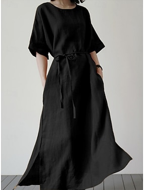 Femmes Robe maxi 100% Coton Robe d'Été Robe Caftan Robe Blanche Basique Occasionnel Quotidien Extérieur Coupe Ample Uni Demi Manches Col ras du cou Vert militaire Noir Blanche Vin Été Printemps