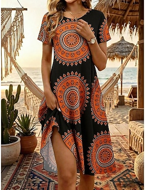 Femmes Mini Robe Robe bohème Robe Décontractée Robe T-Shirt ancien Quotidien Extérieur Vacances Coupe régulière Graphique Abstrait Manche Courte Col ras du cou Bleu Jaune Violet Orange Été Printemps