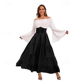 Rétro Vintage Médiéval Renaissance Chemise Sur-robe Viking Irlandais Elfe Deux Pièces Déguisement Femmes Celtique Pirate Fantaisie Halloween Mascarade Vacances Décontracté Quotidien Festival Robe