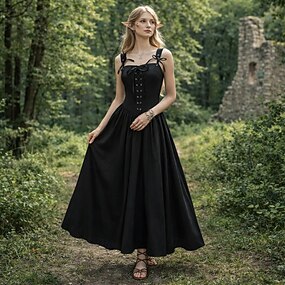 ancien Médiéval Renaissance Longue longueur Robe Fée À lacets Ligne A Déguisement Femmes Fantaisie Halloween Carnaval Mascarade Foire de la Renaissance LARP Soirée à thème rétro Adultes Robe Toutes