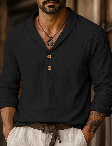 Homme Chemise Chemise en lin Chemise popover Chemise d'été Chemise de Plage Couleur Unie Vacances Fête Noir Blanche Rose dragée Bleu manche longue Henley Vêtement Tenue