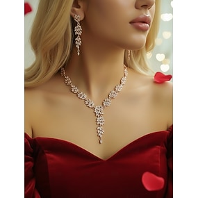 Ensemble collier et boucles d'oreilles feuille en strass doré pour femme - bijoux élégants et étincelants pour les fêtes et les soirées